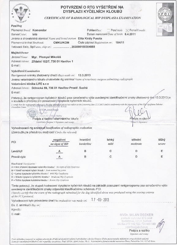 Doufáme, že bude v českém chovu přínosem. Děkujeme Partizer Csaba