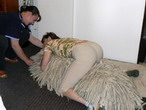 pohybu. V další fázi osoby v hloučku začnou křičet a hlasitě se smát, přetahují se o berli,