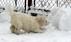 mála komondorů, je stále pracovně veden. Majitel jej používá ke střežení ovcí a prasat.
