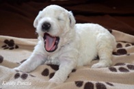 "Abba" Fehér Csillag Király Puszta je podruhé matkou. Je to ušlechtilá fena silné kostry, výborného pigmentu s tmavým okem, hlubokým hrudníkem
